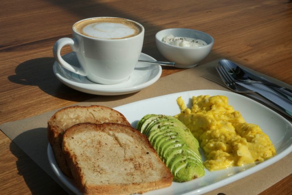 Para desayunos y meriendas hay opciones de cafetería que incluyen tostados clásicos, versiones veggies, revueltos, medialunas, yogures y la infaltable tostada con palta y huevo revuelto. Para los más golosos hay tortitas, cookies, pastafrola, brownie y más.