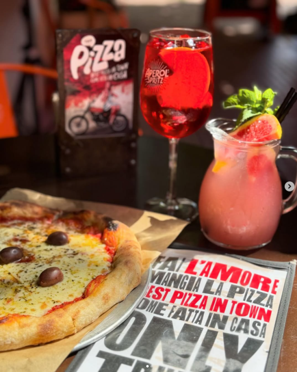 Masas de 48hs de fermentación. Salsas elaboradas con Tomates Italianos. Opción Sin Gluten. Cocktelería BAR.